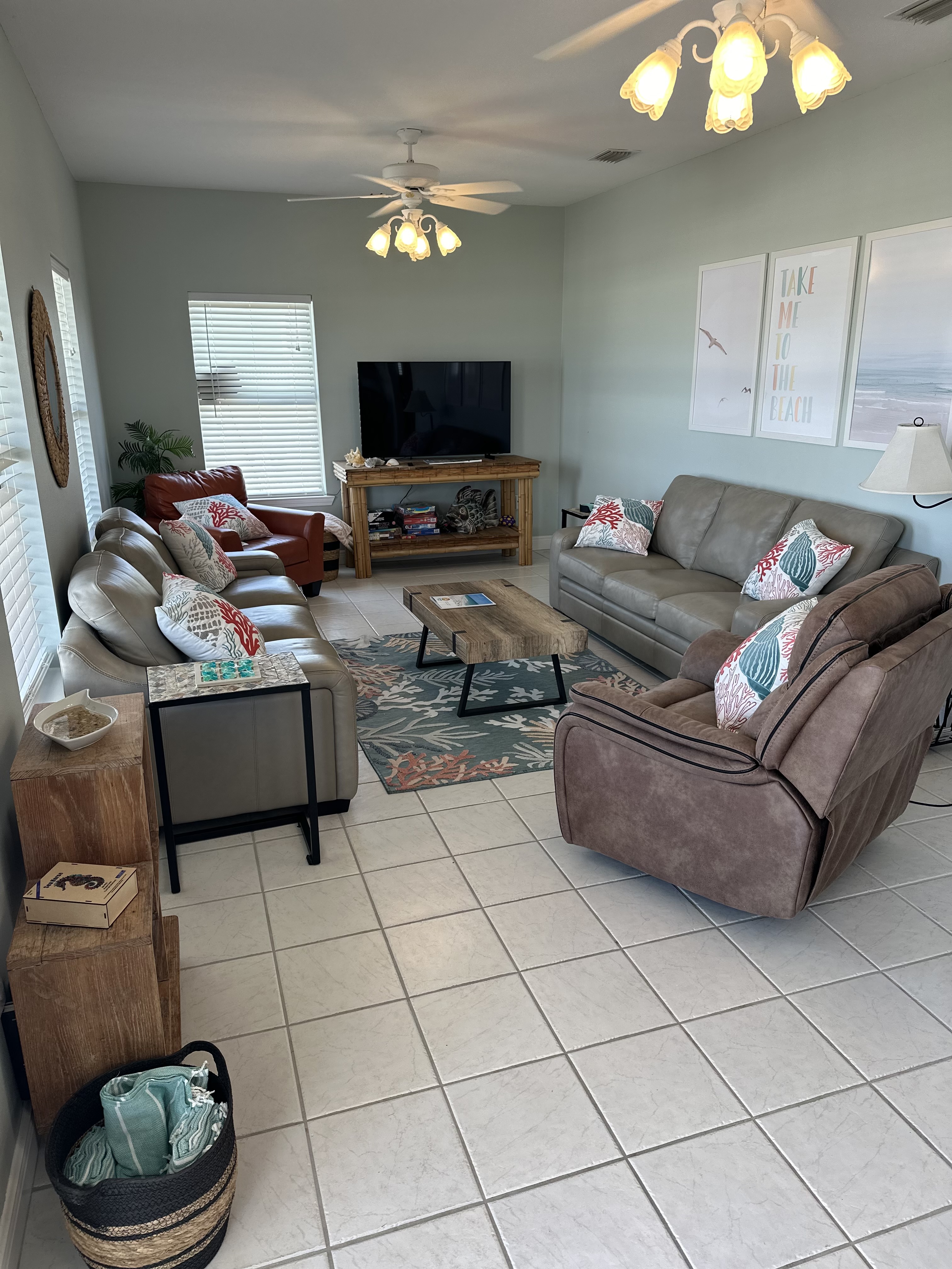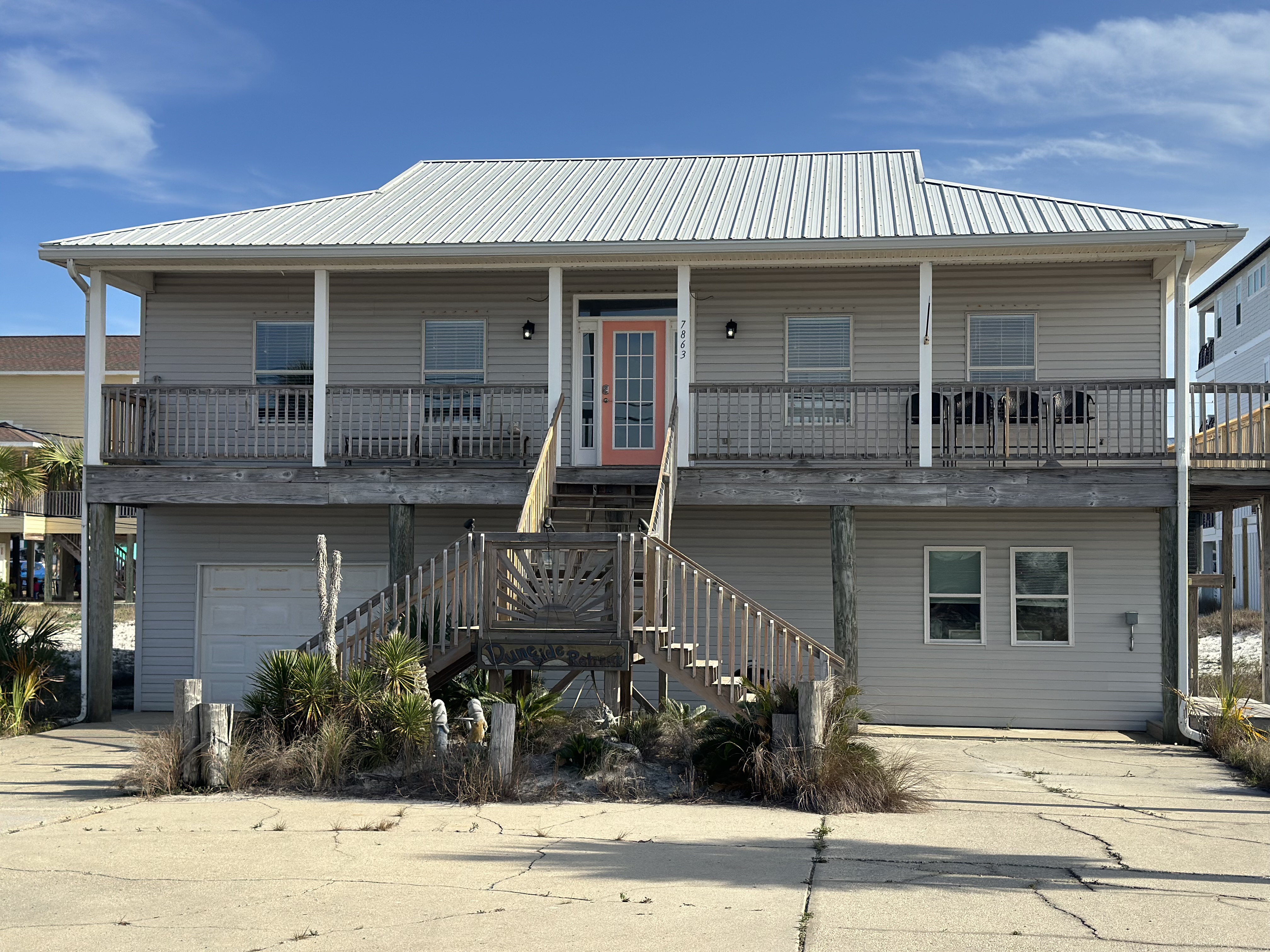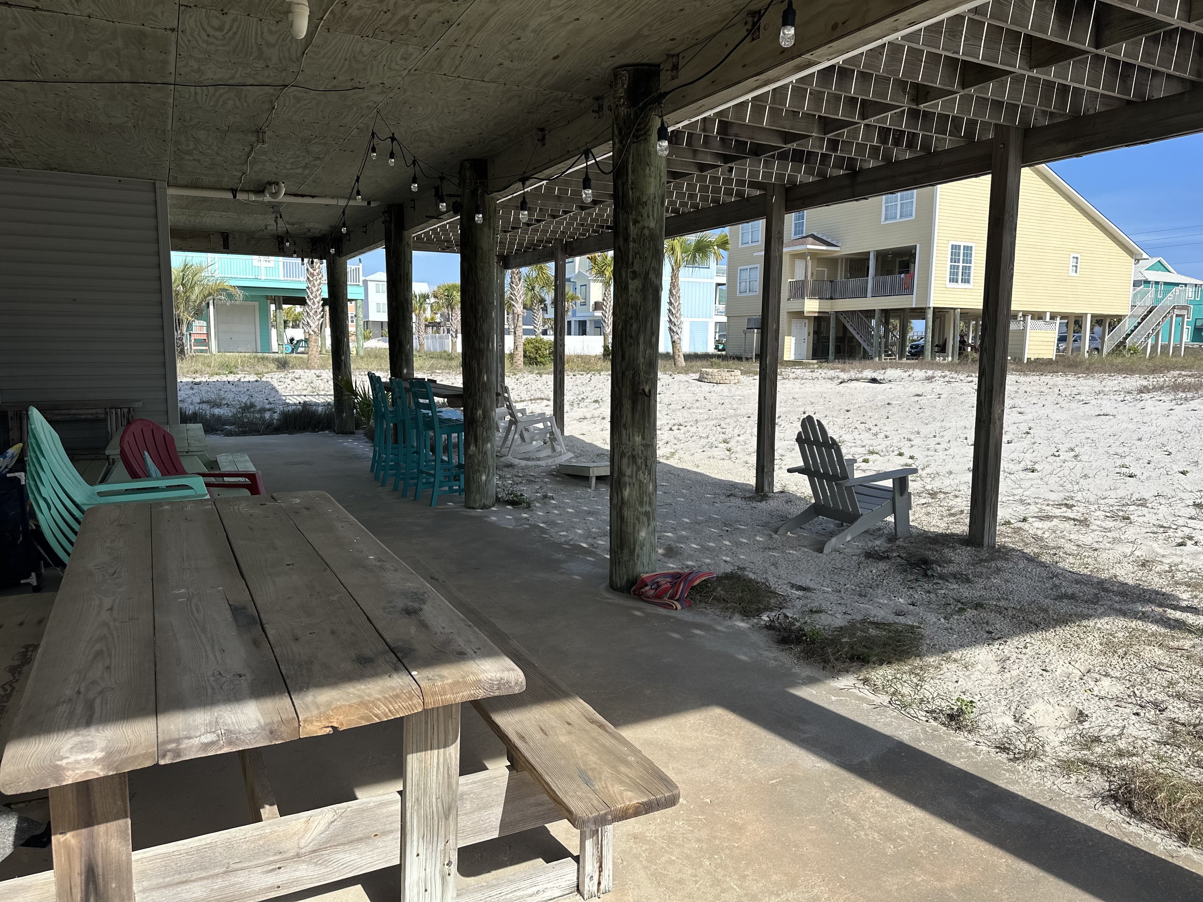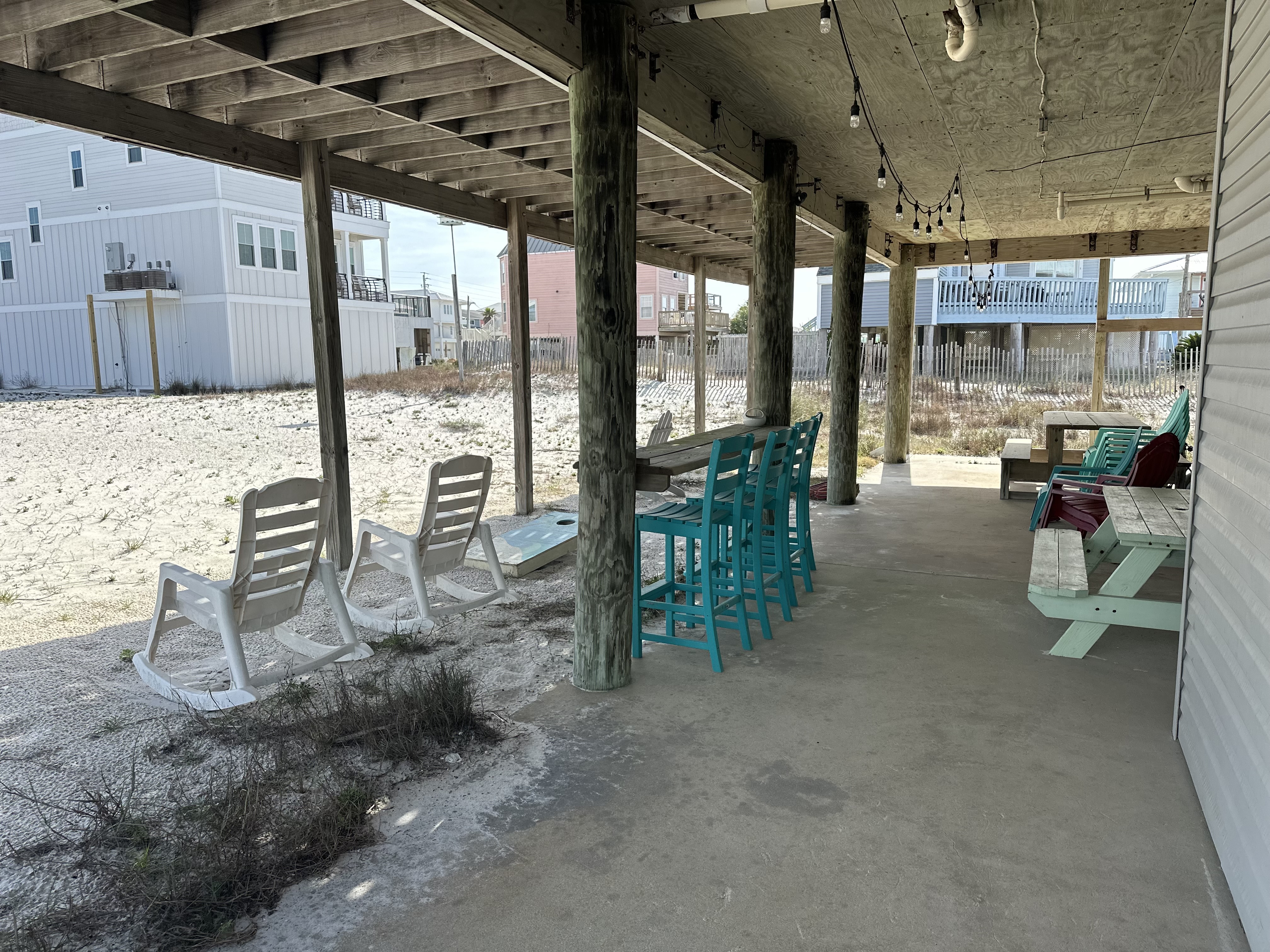 We invite you to experience the serene beauty of Navarre Beach, the Santa Rosa Sound, and the Gulf of America. Our beach house offers a sanctuary of tranquility, where every morning begins with the sound of the tide and every evening is framed by the horizon. The Sandy Escape has one of the best locations on Navarre Beach being directly across from the beach parking lot 38A which allows for a quick walk across the backyard to the beach, as well as a short walk over the dunes to the Santa Rosa sound out of the front door. (There are trails to walk around the dunes.) At this time we do not have a booking calendar active on this site. Contact us directly at thesandyescapellc@gmail.com to book direct with no hidden fees or with any questions you may have. Our rate is $2500.00 per week plus a $250 cleaning fee. All taxes are already included in the rate and paid by the owner instead of you, our guest! We only book week long stays and when you visit, you'll see, a week is just never enough! Minimum age to book is 25 and one adult is required for every four minors under 18. Check in time is 3pm on Saturday, check out is 10am the following Saturday. There is plenty of parking in the driveway for a trailer, boat, jet skis, etc. as well as at least 4 cars on the opposite half. A $500.00 security deposit is due 48 hours prior to check in and will be returned with 48 hours of check out providing there is no damage to the property. Shampoo, conditioner, body wash, dish soap, dishwasher detergent, paper towels, toilet paper, etc are all provided in starter quantities that should be enough for a week for most families to ease your packing burden. There is a Keurig coffee maker as well as a normal coffee pot; ground coffee and Keurig pods are also provided in starter quantities. The home has 4 bedrooms and 3 full baths. In the main house there are 3 bedrooms and 2 full baths, 2 bedrooms each have 1 king bed, those rooms also have a door going out onto the back deck. The other bedroom has 2 queen beds. Downstairs in the separate finished blow-through area is another bedroom and full bath, that bedroom has 2 queen beds and also has a pull out sofa in the living/game room. (NOTE- The lower level only has window unit and portable air/heat as it is not connected to the main house! It is still comfortably heated and cooled but is not central air like the upstairs. ) This property is set up to sleep 12 adults (2 per bed) plus whoever wants to sleep on the pull out sofa! We look forward to hosting you soon!